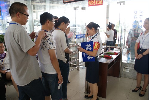 這次預選賽內容分別為理論和實際操作技能兩大部分。其中理論考試主要包括《汽車客運服務員》、《道路旅客運輸及客運站管理規(guī)定》等知識,采取抽答題方式,當場問答;技能操作比賽包括售票和檢票操作。售票比賽要求選手計時發(fā)售5張客票,不僅要微笑服務、規(guī)范操作,更要做好對突發(fā)事件的應急處理,如特殊票種售票識別、票款真假識別等突發(fā)事件。檢票比賽,包涵了站務員安全喊話、理隊檢票、核對人數(shù)、旗笛指揮等內容。