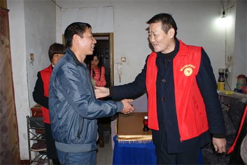 慰問活動第一個站是到清潭社區(qū)居民聶時香家中,幾年前她丈夫身患白血病去世,留下了二個尚未成年的孩子和一個80歲的婆婆。因為丈夫治病導致家庭負債累累,全家靠聶時香種菜的微薄收入來維持生計。志愿者在對聶時香進行慰問時頗費了一番周折,由于她是市慈善協(xié)會推介過來的特困人士,當湘運分會定于9號進行慰問活動后,志愿者、黨群工作部部長張曉春按市慈善協(xié)會提供的聯(lián)系方式提前和她進行聯(lián)系,在8號白天撥打了其幾十次電話都未接聽,晚上繼續(xù)用電話和短信也一直未聯(lián)系上。9號上午志愿者繼續(xù)撥打電話仍未接聽,由于無法取得聯(lián)系,而其他慰問對象都已聯(lián)系好在家中等待,志愿工作人員將情況匯報給了會長彭瑞華,建議是否改換慰問對象。當彭瑞華會長聽說聶時香平時一般在清潭菜市場做生意時,立即指示工作人員與市慈善協(xié)會以及其所在社區(qū)進行溝通,讓他們幫助聯(lián)系。彭瑞華堅定地說,不能因為出現(xiàn)一點情況就放棄慰問,一定要想方設法聯(lián)系上,今天哪怕是到菜市場去找,我們也一定要將這份愛送到她手中。10點多,在志愿者的種種努力下終于和她聯(lián)系上了。在冷洌的寒風中,志愿者找到了等候在馬路邊的聶時香,當志愿者將帶來的大米、油及慰問金送到她家中時,她年近九旬的婆婆緊緊拉著志愿者的手眼含熱淚地說,你們真是太好了。