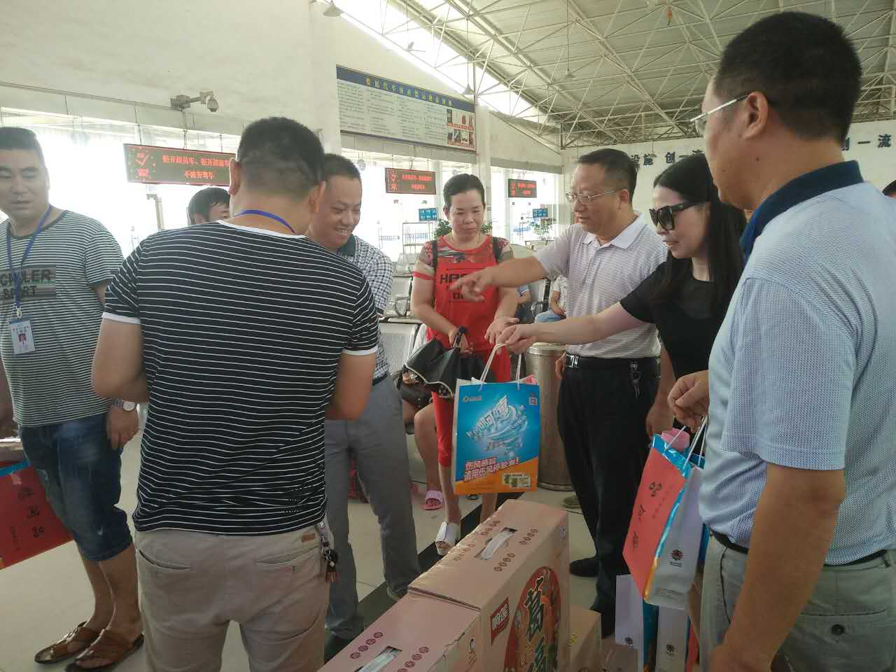 今天上午市總工會黨組成員、副主席曾小尚一行來到婁底汽車南站看望慰問堅守崗位的一線員工,為他們送上防暑降溫品以及高溫作業(yè)宣傳資料,并向他們致以親切慰問。公司董事兼副總經(jīng)理、工會主席謝克明陪同慰問。