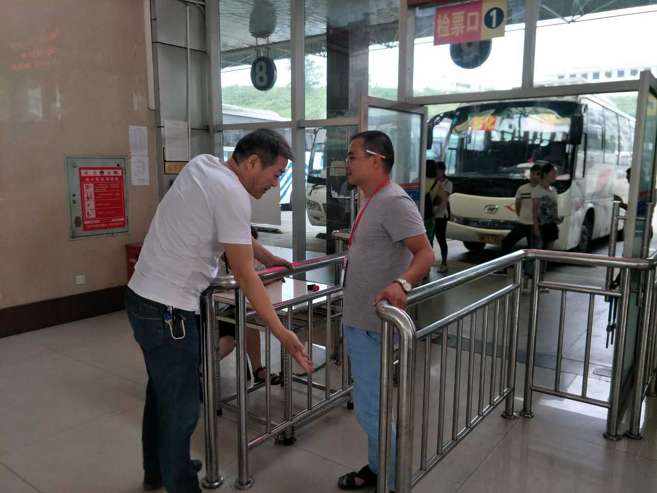 在冷水江分公司,檢查組一行到三品檢查崗,查看三品檢查臺(tái)帳及有關(guān)工作情況;到候車(chē)廳了解人證識(shí)別通道閘機(jī)安裝使用情況;在出站檢查室,彭總親自登錄公司客運(yùn)一卡通系統(tǒng),查看車(chē)輛出站檢查記錄等,要求分公司負(fù)責(zé)人不斷加強(qiáng)自身學(xué)習(xí),抓好對(duì)員工三品識(shí)別、檢查等安全生產(chǎn)業(yè)務(wù)知識(shí)及操作技能的培訓(xùn);要充分利用好人證識(shí)別通道閘機(jī)等配套設(shè)備設(shè)施,進(jìn)一步抓好車(chē)站封閉式管理工作;要充分發(fā)揮客運(yùn)一卡通等系統(tǒng)功能,進(jìn)一步規(guī)范管理,促進(jìn)安生生產(chǎn)標(biāo)準(zhǔn)工作常態(tài)化。
