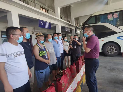 在婁底汽車站,譚主席一行走訪慰問在高溫下堅(jiān)守崗位的一線員工,為他們發(fā)放了夏日清涼慰問品。譚主席親切與員工們交談,對(duì)他們高溫酷暑下工作的堅(jiān)守和付出表示感謝,叮囑他們?cè)谡J(rèn)真工作的同時(shí),要做好防暑降溫,確保身體健康和生產(chǎn)安全,同時(shí)囑咐在場的企業(yè)負(fù)責(zé)人,要合理安排工作和休息時(shí)間,落實(shí)好高溫作業(yè)下的各項(xiàng)保障措施,為員工創(chuàng)造一個(gè)舒適、安全的工作環(huán)境。聽了譚主席的話,在場的員工們深受感動(dòng),紛紛表示,盡管受到高溫天氣和疫情防控的雙重考驗(yàn),但組織的關(guān)心讓大家充滿動(dòng)力和信心,大家一定會(huì)堅(jiān)守崗位,做好本職工作,為疫情防控和交通運(yùn)輸保障做出好的成績。多年來,作為職工的“娘家人”,婁底市總工會(huì)始終關(guān)心關(guān)愛企業(yè)和職工,通過積極開展各類關(guān)愛行動(dòng),傳遞著工會(huì)組織的溫暖,助力企業(yè)發(fā)展。此次來我司開展送清涼慰問活動(dòng),讓酷熱中堅(jiān)守在一線的我司廣大職工感受到工會(huì)“娘家人”的關(guān)心關(guān)愛,極大激發(fā)了大家戰(zhàn)疫情、斗酷暑的工作熱情,激勵(lì)廣大職工為交通事業(yè)發(fā)展做出更大的貢獻(xiàn)。