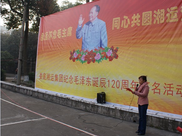 今年是毛澤東主席誕辰120周年,是公司深入學習貫徹黨的十八屆三中全會精神,踏上新征程的開局之年。12月24日上午9時許,公司在老機關院落籃球坪隆重舉行“永遠懷念毛主席、同心共圓湘運夢”紀念毛澤東誕辰120周年離退休老同志大型簽名紀念活動,緬懷先烈們的豐功偉績。公司婁底片離退休、 內退、協(xié)保同志近四百人參加了此次活動。公司董事長兼總經理彭瑞華、監(jiān)事會主席吳一江等公司領導親臨活動現場。